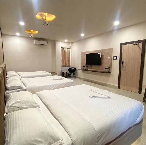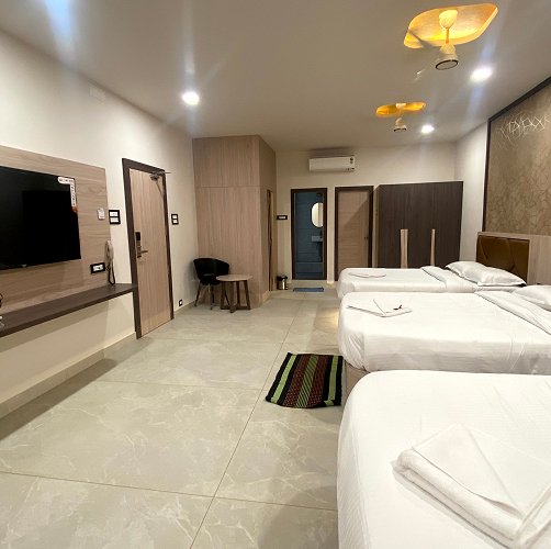 Comfortable Accommodations: JM Residency Executive Suite in Theni offers family rooms with air-conditioning, private bathrooms, and modern amenities. Each room includes a work desk, TV, and free WiFi, ensuring a pleasant stay.